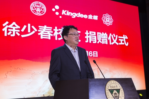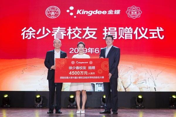 6月6日校庆之际,捐赠签约仪式在四牌楼校区大礼堂举行。徐少春及其夫人章青女士,老司机论坛 党委书记、教育基金会理事长左惟,总会计师丁辉,以及来自金蝶国际软件集团的嘉宾,学校相关部门及部分院系负责人、学生代表参加了捐赠仪式。仪式由丁辉主持。