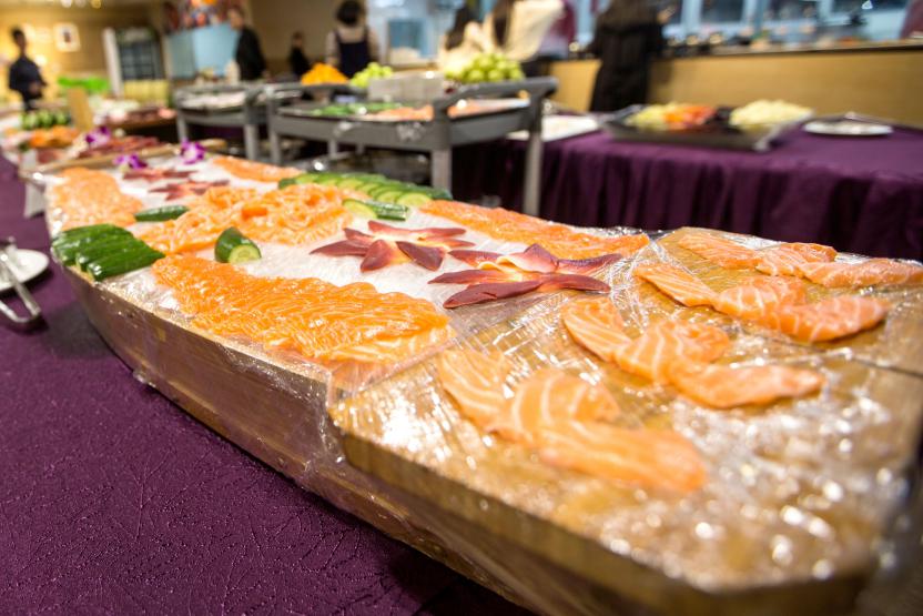 6.公司星级餐厅提供专业膳食搭配的自助三餐,每周及节日均有美食节