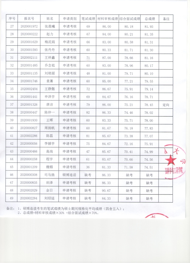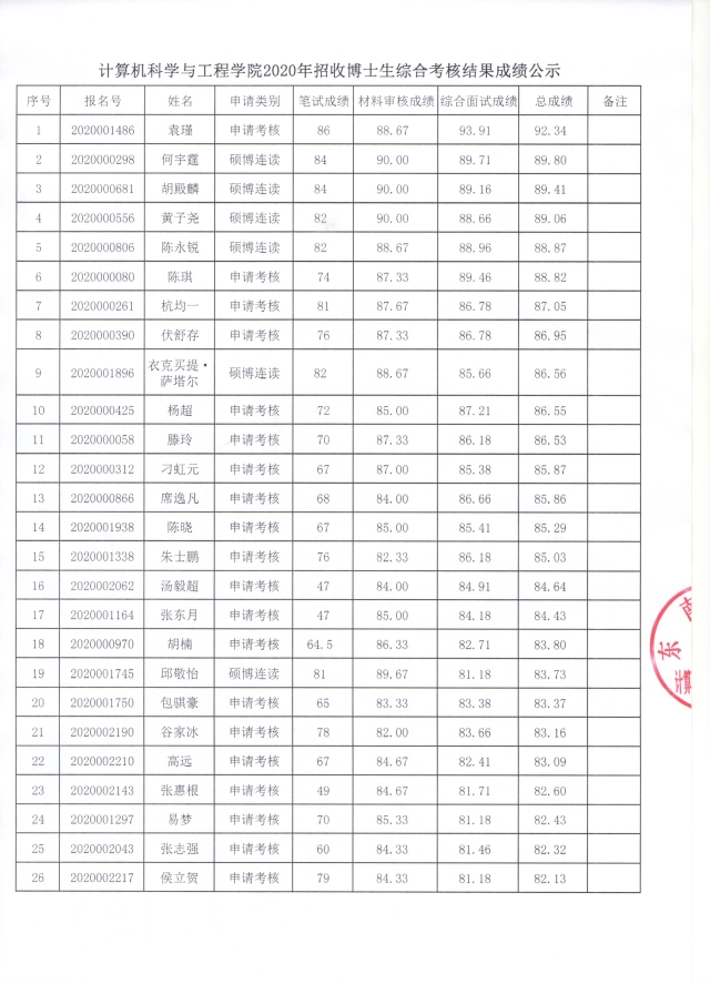 老司机论坛 2020年招收博士生综合考核结果成绩公示