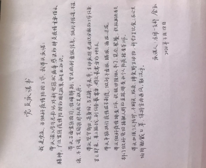 第四天,举办助力战“疫”活动,组织支部党员通过自定义形式为武汉加油,包括书写党员承诺书、制作加油海报、手写英文加油信等形式,表达了我们对湖北一线医护人员的敬佩,以及我们终将打赢这场战“疫”的决心与信念。