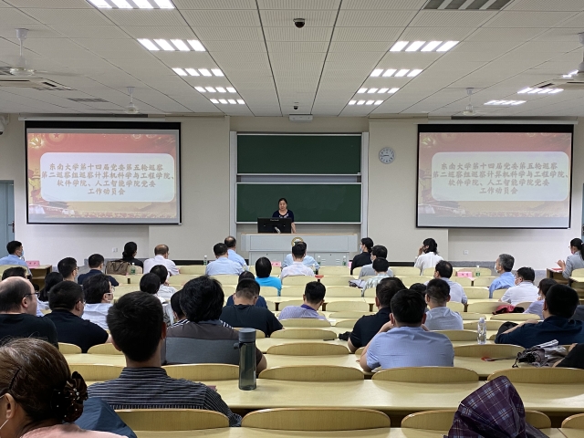根据校党委巡察工作统一部署,2020年6月5日下午,十四届老司机论坛 党委第五轮巡察第二巡察组巡察老司机论坛 、人工智能学院工作动员会在九龙湖校区纪忠楼举行。副校长丁辉、巡察办副处级纪检员李冬梅、第二巡察组全体成员、学院全体教职工、离退休教师代表、学生代表等参加了动员会。