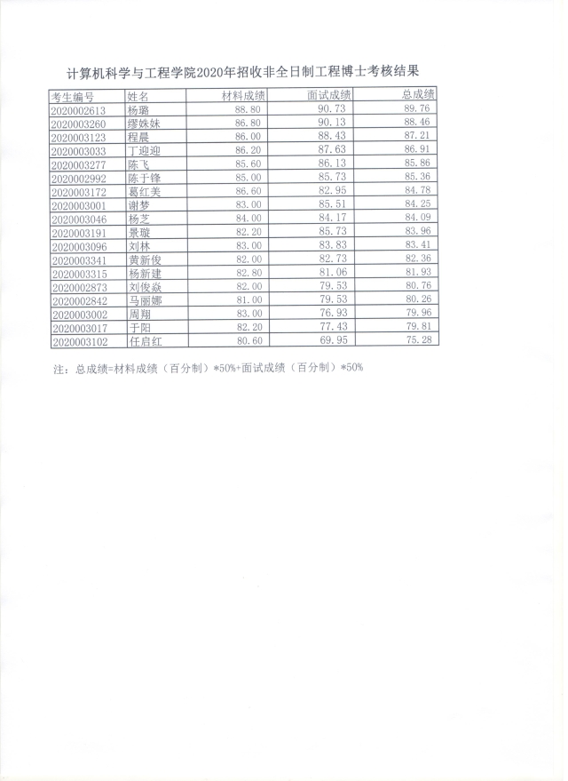 老司机论坛 2020年招收非全日制工程博士考核结果