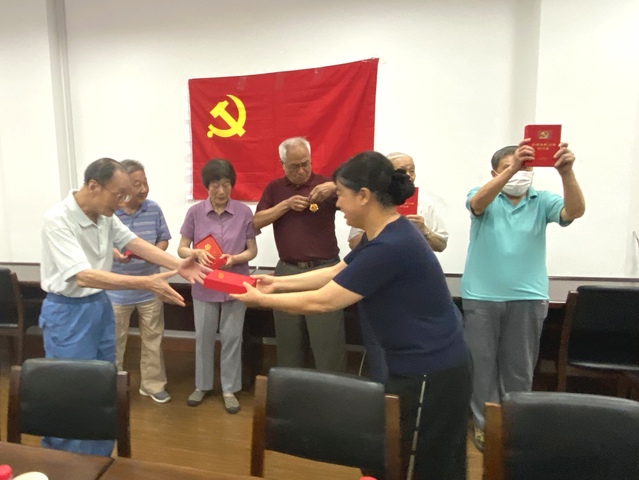 6月28日下午,老司机论坛 、人工智能学院在四牌楼中心楼会议室举行了“光荣在党50年”纪念章颁发仪式。6名党龄满50年的老同志及退休支部党员代表参加了仪式,仪式由学院党委书记杨书记主持。