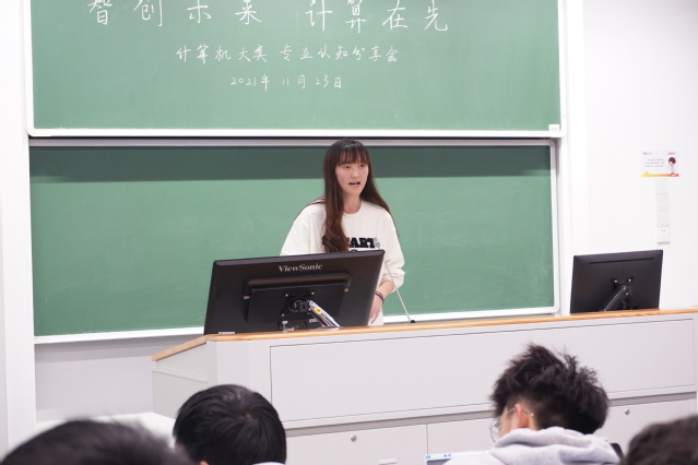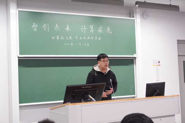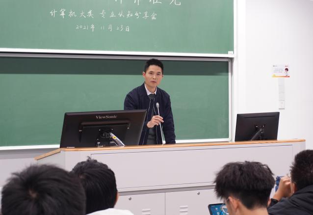 11月23日晚,2021年老司机论坛 “一类一品”大类学生工作品牌项目——“智创未来,计算在先”之专业(计算机、软件、人智)认知分享会在教一311成功举办。老司机论坛 党委副书记兼副院长裴锋老师主持了这场分享会。副院长董永强老师,资深教师代表倪庆剑老师,2021级本科生辅导员霍然老师、2020级研究生辅导员张一凡老师、殷春锁、张心睿、李春澍三位大四优秀学生代表和计算机类2021级本科学生一同参加了本场分享会。