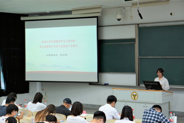 随后,院研究生会主席团成员陈芸丽向与会代表汇报了本次研代会的提案工作。她先介绍提案的基本情况,将其分为研究生思想政治、教育教学、后勤管理3大类,并梳理了提案的主要内容。提案工作开展过程中,研究生代表深入群体,广纳同学们的建议与意见,保证了研究生代表大会的政治性、先进性、群众性,对广大同学积极参与学院及学校建设的主人翁精神致以深深的敬意,并对学院、学校相关部门为维护学生权益,服务学生生活,保障校园良好运转的辛勤付出致以最诚挚的感谢。