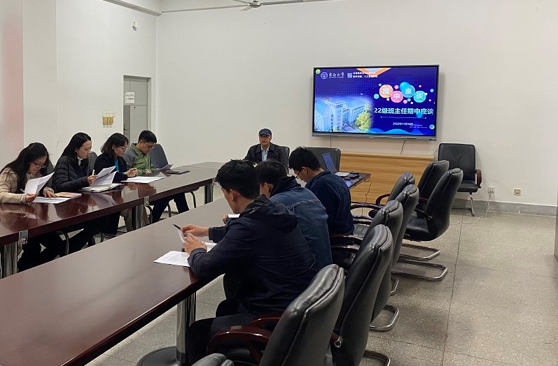 11月18日中午,学院2022级本科生班主任期中座谈会在计算机楼133室举行。学院党委副书记兼副院长裴锋、2022级本科生辅导员、学办主任张一凡及各班班主任出席会议。