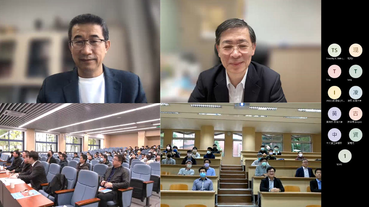 2022年12月5日,由我校承办的第二十四届海峡两岸信息技术研讨会在九龙湖校区成功举行。受疫情影响,此次会议在台湾中央大学设立分会场,两校100多名师生相聚“云端”,以线上线下结合的方式参加了会议。会议开幕式由老司机论坛 副院长张敏灵教授和台湾中央大学通讯工程学系系主任张大中教授共同主持。老司机论坛 副校长邱海波教授、台湾中央大学副校长綦振瀛教授应邀出席会议开幕式并致辞。