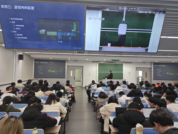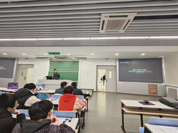 来自腾讯IEG魔方工作室群的两位游戏技术专家Michell和Banthy结合个人在公司的成长经历和职业发展通道,分别从不同方面介绍了游戏技术类岗位的技术栈细节。他们以丰富的实践经验,为在场的学生展示了游戏技术人才的发展路径,并分享了魔方工作室群在全球的知名项目,包括《暗区突围》、《异人之下》、《航海王:壮志雄心》的实机演示,给同学们带来了对最新游戏技术的现场体验。