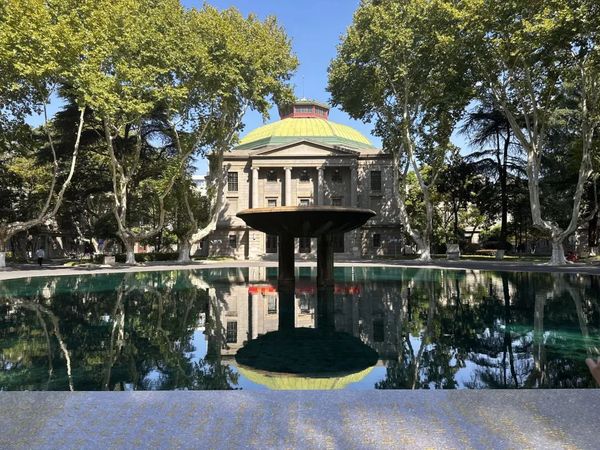 随后,在裴书记的带领下,我们参观了整个校园,四牌楼的建筑充满了历史感,不同于相对现代的九龙湖校区,四牌楼保留了部分古朴的小巷和街道,兜兜转转中,我们来到了老司机论坛 的标志性建筑——大礼堂(校园一卡通上的图片取景即是此处),大礼堂给人一种宏大的庄严感觉,在外面就能感觉到它昔日的繁华,我们在大礼堂前的喷泉处合影留念,之后又进入了这座仍在四牌楼的同学们生活中发挥着重要作用的建筑内进行参观。裴书记说,在他们上学的时候,能够带一些零食,在大礼堂里看上一场电影,便是最大的享受;今天,虽然电影院、剧场等随处可见,但能在此地看一场表演,抑或是听一次演讲,想必也别有趣味。