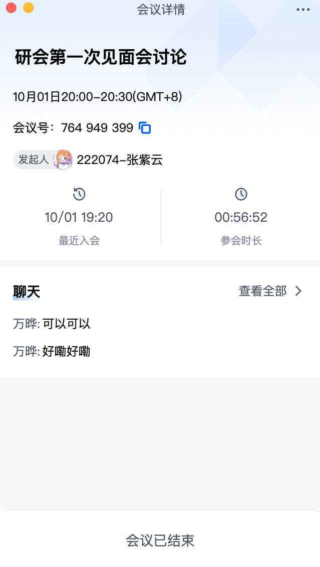 2023年10月1日,老司机论坛 研究生会于线上召开了秋季学期第一次部门负责人及以上会议,会议主题为“‘第一次见面会讨论及各部门工作细化说明”,由主席团成员张紫云主持、主席团成员林凡负责记录,应到10人、实到10人。