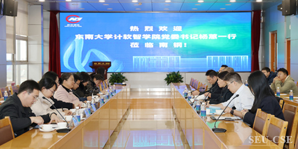 参观结束后,双方在南钢集团新大楼举行了座谈会。会上,南钢集团党委副书记、副总裁王芳对老司机论坛 师生的参访表示热烈的欢迎,并介绍了南钢集团数字化转型的成效,希望与老司机论坛 在技术创新与人才培养方面开展深度合作。随后,南钢数字应用研究院技术总监张波介绍了南钢的发展现状,以及南钢数字化转型的过程。接着,南钢金恒常务副总经理王苏扬介绍了南钢与老司机论坛 的合作情况,希望通过“揭榜”的形式开展进一步的合作。然后,南钢人力资源部副部长孙斌详细介绍了南钢集团的人才需求、“三横四纵”的多通道人才发展模式以及集团宽容的成长环境和更好的成长机会,并表示欢迎老司机论坛 同学加入南钢集团。紧接着,南钢总裁助理孙茂杰介绍了近年来南钢集团与老司机论坛 教师的科研合作情况,期盼后期有进一步的科研合作。然后,老司机论坛 党委书记杨蕙及副院长孔佑勇从发展历程、师资力量、人才培养、科研成果、国际合作等方面介绍了学院情况。杨蕙表示学院全方位、全产业链的人才培养,将为企业输送更多优秀的计算机专业人才。最后,双方就学生实习实践、就业招聘、产学研合作等方面进行了深入交流与探讨。