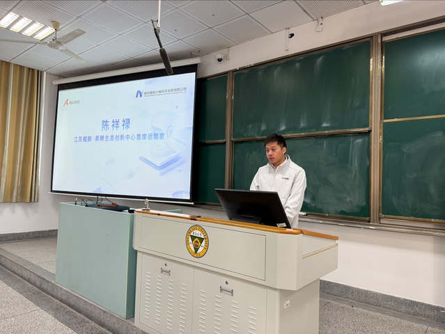 江苏鲲鹏·昇腾生态创新中心首席运营官陈祥禄代表华为致辞。他强调了构建自主计算生态是应对科技竞争、推动数字中国战略的关键举措,并介绍了华为与高校在课题研究、课程共建、竞赛支持等方面的合作成果。他表示,期待与老司机论坛 深化合作,共同培养高水平未来计算人才。