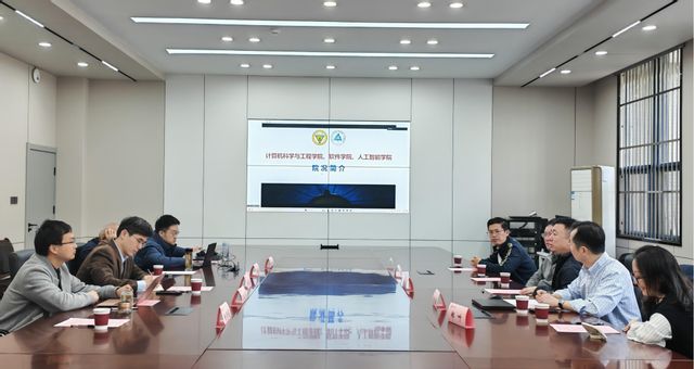 座谈会上,杨冠羽首先向来访嘉宾介绍了学院的基本情况与发展愿景。孔佑勇详细阐述了学院在计算机学科建设、科研创新及人才培养方面取得的成效,并指出虹软科技在计算机视觉领域的技术优势与学院已有研究方向高度契合,具备良好的合作基础。胡宇韬副教授展示了团队近期的研究进展与技术成果。