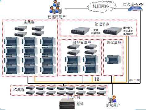 AMS-02数据处理与分 析中心拥有国内最先进的云计算机信息处理平台,该平台为世界各国物理学家访问AMS-02所得的科学数据 和观测数据提供统一视图和索引机制,充分实现了数据共享和协同,对AMS-02实验科研价值的充分体 现具有举足轻重的作用。整个系统采用252个刀片计算节点,8个胖节点,2个管理节点,16个IO节点。 总计提供3504核,提供37.12万亿次峰值浮点计算能力。整个系统采用9台36口40Gb QDR Infiniband交 换机构建数据网络,做到全线速无阻塞。系统并行计算效率超过85%。存储系统采用16个IO节点直接连 接1台存储,读写带宽超过5GB/s,另外还提供磁带存储。云计算平台基于IBM的Tivoli,可以实现按需 硬部署(直接向物理硬件部署操作系统及软件)和软部署(向虚拟机部署)。